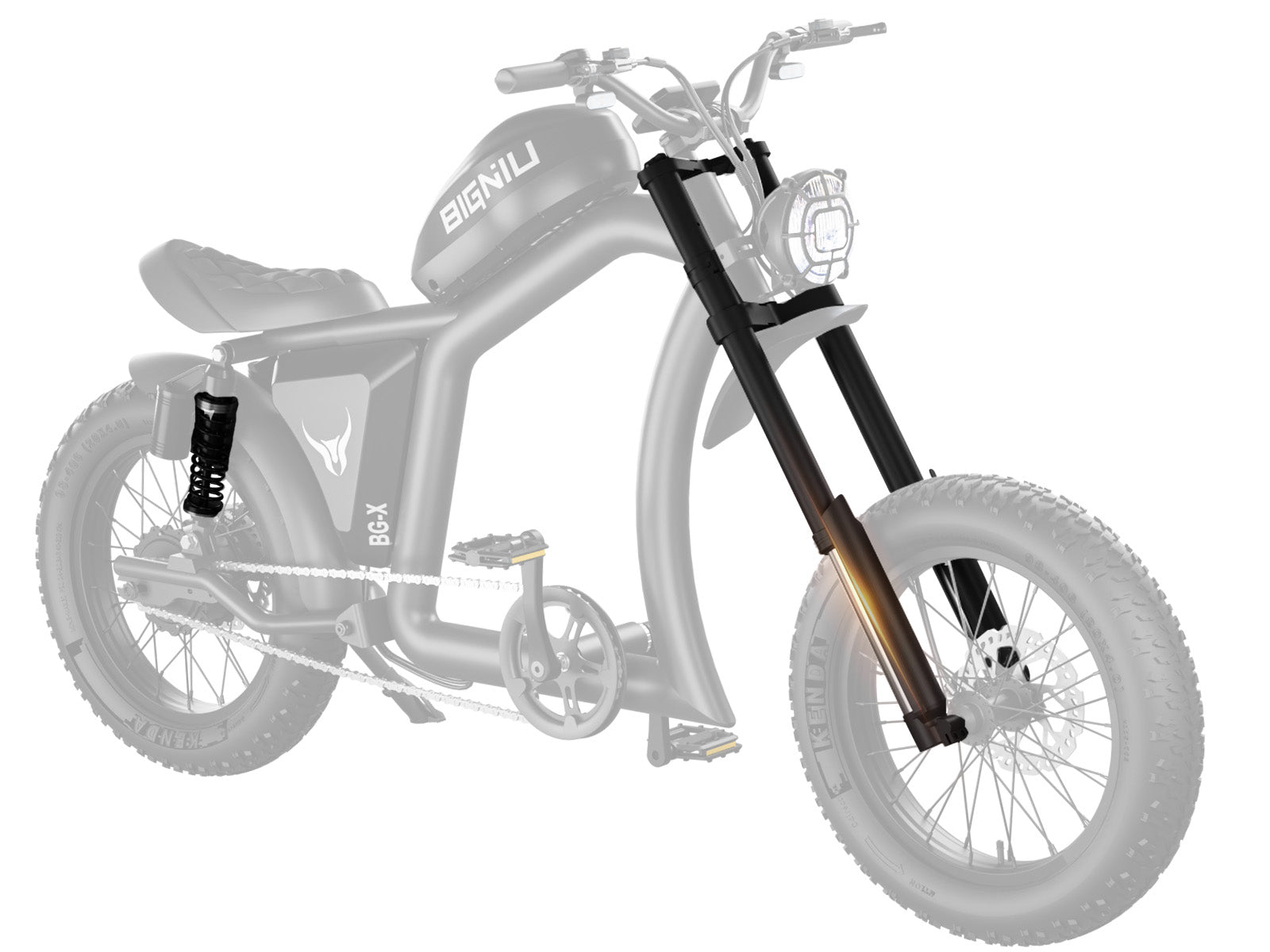 [ Double Shock Absorption ] Uniquely designed BG-X electric bicycle adds front double shoulder inverted shock absorption and rear double suspension shock absorption, which can absorb 80% of bumps and provide you with a smooth and comfortable flat ride.